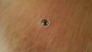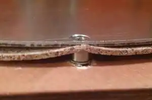 Figure 5: Correctly installed brass insert Using the E-Z Lok tool, install the brass inserts into each hole until they are flush with the surface as shown in Figure 5. Once complete, your base should look like that shown in Figure 6. Reinstall your base board onto your Athena printer. Figure 6: Athena Printer base with brass inserts installed
