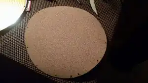 Figure 3: Cork Place the heat spreader over the cork, and use it as a stencil to mark the diameter of the circle as well as the hole position. Use a 1/8" Drill bit to create the corresponding holes in the cork as well as a pair of scissors to cut out the shape as seen in Figure 3.