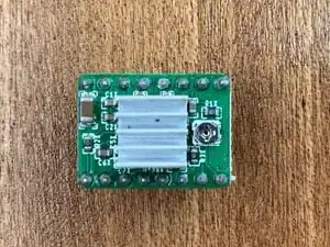 Affix heat sinks to motor controller chipRemove the adhesive backing paper from the heat sink and affix the heat sink to only the chip on the motor controller boards. Note that the heat sink is NOT touching the soldered pins on the side of the board. There is the potential for a short circuit to occur if it is allowed to touch the pins - avoid this!
