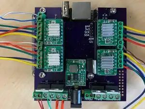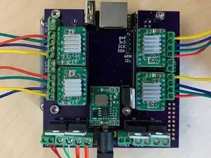 Wire the Motors.The motor wires must be correctly paired in the screw terminals; red-green must be in adjacent terminals and blue-yellow in the other two. Select an order (e.g., red-green-blue-yellow) and follow it with each of the motor screw terminals.