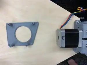 Attach the Athena Board mount to the base in the orientation shown.Refer to picture: With the four #6 x 1/2" sheet metal screws, attach the Athena Board mount to the underside of the base in the orientation shown - note location of the W motor (the motor on the apex having the extruder drive on it) with respect to the Athena Board Mount.