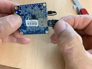 Insert the microSD card.Insert the microSD card into the Orange Pi Zero, contacts go towards the board.
