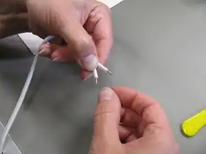Strip and tin both ends of a 10cm (4") long piece of 18ga speaker wire or lamp cord.