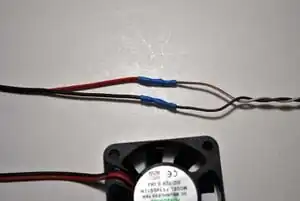 If the 40mm fan has a header on the wires, snip it off with wire cutters. Strip and tin the fan wires.