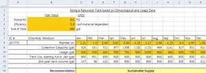 - Keep in mind that this can be calculated per year, month, day, etc. Errors result from low time resolutions because the tank will be filling from rain and emptying from use midcycle. High time resolutions are hard to come by and require more calculations.