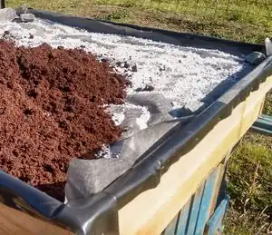 Perlite was evenly spread across the landscaping fabric. Perlite because it retains a lot of water.