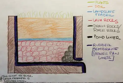 | Landscaping Fabric | The fabric is a permeable material that will prevent the soil from blocking the drain rocks or lava rocks. Without the landscaping fabric the water would not be able to drain properly which may cause root rot. |
