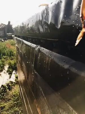 The rubber membrane had to be cut to size. Because of this it would have been best two have a second membrane on hand because cutting it down to size made it smaller in places it needed to be longer in. If the membrane were not cut to size then bunching around the corners would be too bulky and had the potential to cause leakage. The membrane was then one-way cemented on.