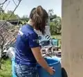 Take the rainwater collected by the system from the faucet located between the first two tanks with a bucket, whenever necessary. If wanted, a hose can be placed.