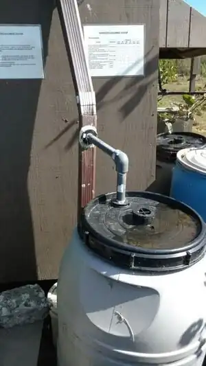 The system should be able to collect 60 gallons of month most months and the water can be stored in tanks as the project's goals were. However, due to a misunderstanding of the current farm management the rainwater from the system is currently not being used and has fallen into disrepair. The instructions for the first flush which state that the water from the first flush should be used to wash feet and not water the crops was misconstrued to mean all water from the entire system. The farm still relies on the city for most of its water supply even though the rainwater catchment system is still in place. However, the first flush itself may be nonfunctional due to the downspout no longer being connected to the first flush. This means the water currently stored in the tanks is unsafe for crops, and that going forward this needs to be rectified.