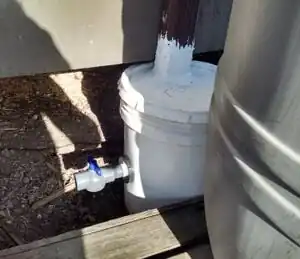 Take the water from the first-flush diverter (little white bucket) off, after each rainfall event. If there is an event of fine rainfall during many days, the first-flush diverter can be empty after a full dry day (without rain).
