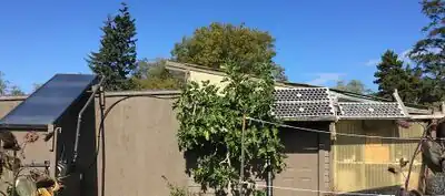 The solar hot water system is currently out of service due to a broken water pump. The pump stopped working in spring 2016, but Bayside is currently in the process of getting it fixed or replaced. At the beginning of October 2016, the solar panel was moved to the other side of the hot water system due to the fig tree's growth in its original location. Bayside also has plans to move the battery closer to the solar panel's new location.
