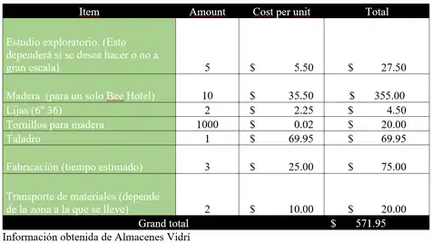 Los precios de Bee Motel variarían en tamaño, estructura, capacidad para almacenaje de abejas, y los demás diseños novedosos.