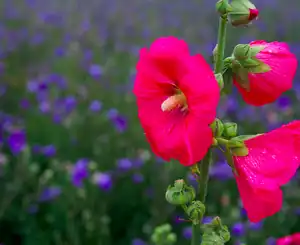 Many flowers and a few herbs are biennials, such as foxgloves, poppies (some varieties), angelica, parsley, onions,carrots, cabbage, and hollyhocks.