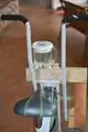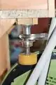 The drive train for the Bike Rodeo Bicycle Blender. It's main components are a bicycle hub, a skateboard wheel, and a blender coupling. -