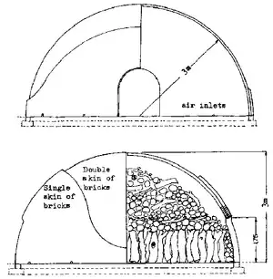 A brick kiln can be utilized to make biochar as well. This is a simple batch reactor with a brick outer layer, with air filtration, and two doors for loading and unloading char.