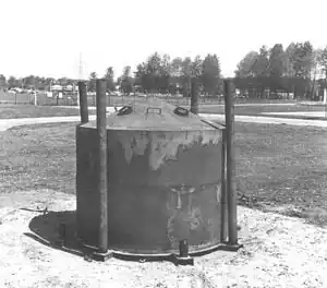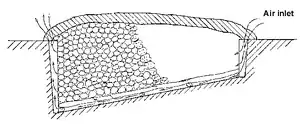 This is a rectangular structure made of concrete with steel doors. It is also known as the Missouri kiln. It can produce about 3 times the amount of biochar as a brick kiln, but at a better quality. While technically complex, this kiln has several advantages. Thermocouples allow temperature monitoring, which facilitates air flow control. Chimneys can be augmented with a flue and afterburner to limit atmospheric emissions.[2]