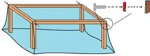 The goal of this inexpensive net is to save as much money as possible for the person using it. Therefore, any cost savings versus a new mosquito net is considered to be highly beneficial to the people needing them. While some money can be saved by building the nets using the below design and materials, this design of bed net can still be made using a number of widely available and inexpensive materials the builder may already have ready access to. For example, by replacing the brand new wood with branches found outside or with used lumber bought at a mill, the cost of the frame material becomes highly reduced. By replacing the brand new sheet material with some old sheets the builder may have or with locally available, cheap fabrics, the cost of the netting becomes highly reduced as well.