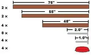 • 1 x 1 Wood (Total: 38' – 12.5m, cut into: 4 x 48", 2 x 55", 2 x 75")