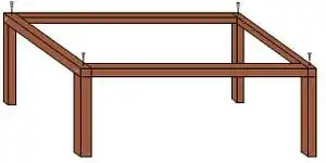 3. Attach one of the 4 48" legs at each corner as outlined in Figure 3 using 2" nails