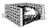 Block Bin- Concrete blocks or bricks can be used to build a makeshift container. Not suitable for kitchen wastes as not secure from rodent access- this system would need additional barriers such as chicken wire. |