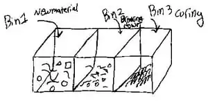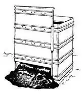 | Single Bin- A stationary bin where new material is applied to the top of the bin and processed compost is removed from the bottom or left to further decompose. | |