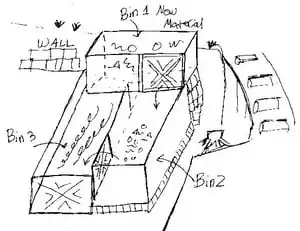 Stand Alone System- This desgin can be made very easily with palettes or wood scraps. Block bins as pictured above are also appropriate. | |