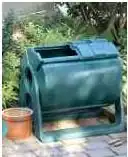 Compost Tumbler- Many systems are available that use a round cylinder to house the compost. Rotating the barrel is effectively turning the compost. These bins are very efficient for small amounts of material and for the user who wants a minimal amount of work to manage their compost. |