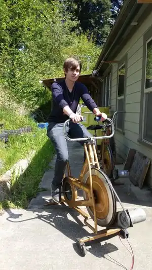The MEOW has the potential of having bicycles being used to charge the batteries. A little research was conducted in case the project got ahead of schedule and the bikes were able to be hooked up. Biking is the most energy-efficient way to travel compared to animals and machines. During the Race Across America, the average efficiency was about 20% which is fantastic and in no reach of fossil fuel cars. 374 calories are required to produce 100 W per hour and the average person can produce about 0.75 W for several hours and 225 W when pressing hard for a few minutes. A physically fit cyclist can produce 375 W for a few minutes and 525 W for up to a minute.[12] The numbers for bike power is very impressive and a wonderful option for the MEOW.