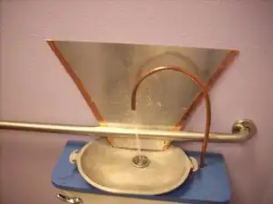 Fig 12: We added this Star Trek-like panel to guide the water that was splashing onto the wall, back into the basin. This addition may not be necessary depending on your particular basin and water pressure.