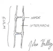 Construction with bamboo is different than building with conventional timber. Its long fibers give it twice the compressive strength of concrete, and the same tension strength as steel. It has greater shear strength than many structural woods, but it is too flexible to take up bending forces. For this reason, each truss is built to put only tension or compression forces in the bamboo. The secret to Bamboo's strength is its internal shape. It is made of internodes, which are hollow cylinders, and nodes, which interupt the internodes about every foot or so with a wooden "plug".