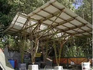 CCAT's bamboo structure is large, with 600 square feet of roof area, and fairly lightweight. This caused some of the builders to think that the structure might act as a giant kite; in order to keep it secure, they anchored the building in place with six 3000-pound concrete blocks.