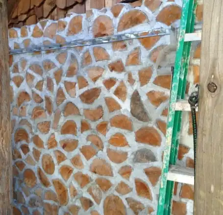 The stability of the mortar is very important. Shrinkage of the wood or the mortar is to be avoided. The mix suggested by cordwood expert Rob Roy, author of "Cordwood building: State of the Art," has the strange ingredient of wet saw dust. It acts to slow the drying of the mortar. This helps to prevent cracks and gaps between the logs and the mortar.