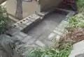 Originally water collection tanks were going to be used, but we decided to build a brick trough instead, for its durability, aesthetics, and capacity. PVC pipe was lain down from the base of the retaining wall to the bath tub by the food forest. A bucket was put in place with a grate on top to catch the falling water. Gravel was spread around the area where the trough is as a base layer, then boards were placed over the gravel to help create a level surface for the bricks. The trough was built with two brick thick walls to withstand water pressure. A faucet was placed near the base of the tank, and the bottom of the tank was raised to the faucet's level with mortar to avoid standing water. The inside was lined with an old water bladder, which can be removed for maintenance or cleaning if necessary.