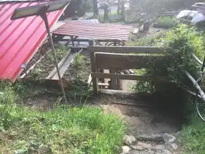 Our wash station has two basic systems, solar collector and drainage. The solar collector must be made with materials that are capable of collecting and retaining heat. Heat retention depends on the type of insulation material. The solar collector uses a natural process called thermosyponing. This process uses the pressure of warm water to push the cooler water, therefore circulating all the water to be warm withing the system. Water storage must be placed above the solar catchment system, so that the warm water pushes to the top. The tank itself must be well insulated, so that during low periods of sun exposure, the water will remain warm. The drainage must properly disperse the water through using mediums made with different sizes of rock and correct slopes (Sitzmann 2019).