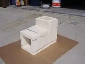 The square combustion chamber was constructed out of insulative bricks. Bricks were cut and shaped using a hack saw. Heat resistant putty was used as sealant.