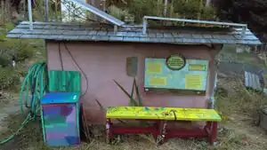 The inverter for the solar kiosk has been stolen. The wooden frame of the kiosk is being repurposed to serve as a weighing station for the food production from the gardens. The kiosk allows for food data collection capabilities and has a garden map. The solar charging station will be functional again when a new inverter is put into place.