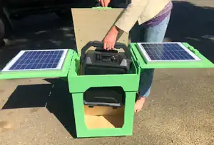 Each teammate built their own prototype using cardboard and some kind of speaker they happened to have available. At the time of prototyping we had not done an energy analysis for the speaker yet and did not know how many solar panels we would need to use. We planned for four or five panels and had them either fold on top of each other or slide out. Some of us focused on making the prototype the actual size it would end up being, while others focused on making a more thorough model with all the features. There were aspects from each prototype that we ended up using in our final product.
