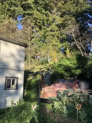 This shows Justin, Maddison and our friend Suzuki who helped us carry the cistern down to it's final position. -