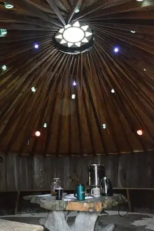 This yurt was built to be a permanent structure and is used on campus for a gathering place. Please see CCAT's webpage and take the virtual tour for more pictures of the yurt.