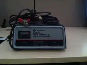 Connect corresponding positive (red) and negative (black) clips of battery charger to charging tabs Step 5: Plug in and turn on battery charger