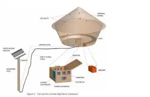 - The LED lights powered by the PV system and can be turned on and off using the switches on the side of the power center box that houses the inverter, charge controller, and spare fuses.