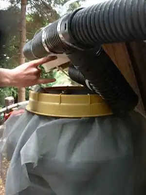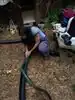 Fig 11: Sarah the hardest worker who is always chuggin' away. Here she is cutting open the gutter out of the drainage pipe.