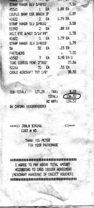 Our budget for this project was revised many times before we had our final design approved so we could go out and shop of supplies. Here are our receipts for the project; Fig 2 is an example of how one of our group members was reimbursed by CCAT for purchases of material from the project.