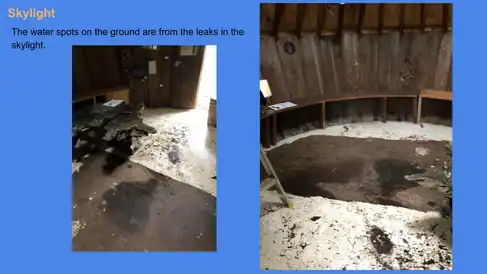 - Skylight: We have learned that the skylight is held in place connected to the plywood boards and shingles from the outside, and will require access to the roof in order to sufficiently renovate the skylight. Without permission to get on the roof we could not move forward with some of the tasks we had envisioned for this project. Examining the campus regulations for such student projects required a great deal of time to address, and considerable coordination between all parties involved. Due to these policies and requirements we do not qualify as approved contractors that may work on such roof structures. In turn, we had to dedicate some time to planning and revisiting what steps must be taken in order to consider any viable projects concerning roof modifications.