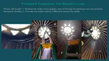 The book suggest saturating the canvas in the sealant, and if the canvas is on its frame a long-handled roller may be used to coat the canvas. Depending on the smell of the sealant, the author suggest waiting to use the yurt for 36-48 hours. There are great details in the roofing design which provide an outline for the construction of the skylight hole and covering. Instead of replacing the glass bottles, we may include a window on the canvas or include a structure inside the yurt which would be placed below the skylight to reflect the entering light.[4]