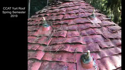 It fits in quite well at CCAT for its educational space for appropriate technology. The roof of the yurt has undergone some renovation in order to reduce it's impact on the environment, and add some aesthetic significance to it. Time has taken its toll on the yurt, and there is visible wear and tear to the roof. The roof has begun to leak and this could lead to damage inside. We were tasked by CCAT to find a solution to correct the issues with the leaky roof, and so the yurt may continue to serve as an educational example of alternative building. Our hope is that we may renovate or replace the yurt roof, and maintain it's appeal for gathering with friends and colleagues.