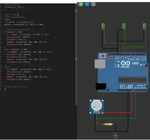 The electronics of each education trophy consist of an Arduino Uno REV3, three pulse width modulation integrated circuits, a 5.5mm jack socket, a 10k ohm potentiometer modified to rotate a continuous 360 degrees, three 30 ohm 2 watt resistors, and four 25k ohm resistors, and the six 300mm flexible filament LEDs in the brain. The components are connected according to the circuit diagram shown in the included image titled "Circuit Diagram". Two flexible filament LEDs are connected in series for the rear, middle, and front of the brain, as single LEDs. The Arduino is coded to read the voltage of the potentiometer and vary the brightness of each LED filament in a pulsing pattern according to where the potentiometer is in its rotation. An image of the code used in the operation of the education trophies is shown in the image titled "Ardunio Code".