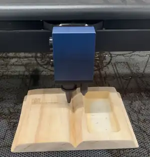 The trophy bases were first designed in AutoCAD to ensure correct dimensions. A six foot 3/4 " thick red oak wood plank was used to build the bases. The bottom, side balls, and top of the base were all cut using a laser cutter. The AutoCAD file used to design the base was transferred into a pdf and uploaded on to the laser cutter to cut the wood. Prior to laser cutting the wood, the wood was cut into two sections, 21 inches long and 26 inches long, then planed to 3/8" thick. Once the wood was laser cut the bases were assembled using wood glue and held together using woodworking clamps while the glue tried. After the glue completely dried on both bases they were sanded down to create smooth and even edges. The bases were stained using an ebony wood stain after sanding was completed. Once the stain dried for five hours the bases were coated in a polyurethane sealant to protect the wood. After staining and sealing the bases decorative gilded edges were nailed on each corner of the bases.