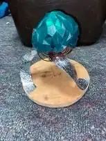 In the first trial for this section, the resin was left to dry for too long before attempting to add the dye, so no dye was added and the section turned out clear with a slight yellow tint. In the second trial, the resin was poured all at once and the green and gold dye were mixed too much leading to a murky brown-green-gold color. In the third trial, the resin was poured in layers and a different green dye was used, leading to the bright green color seen in Figure 1-H. One section from the 2nd trial and one from the 3rd were used in the final trophies.